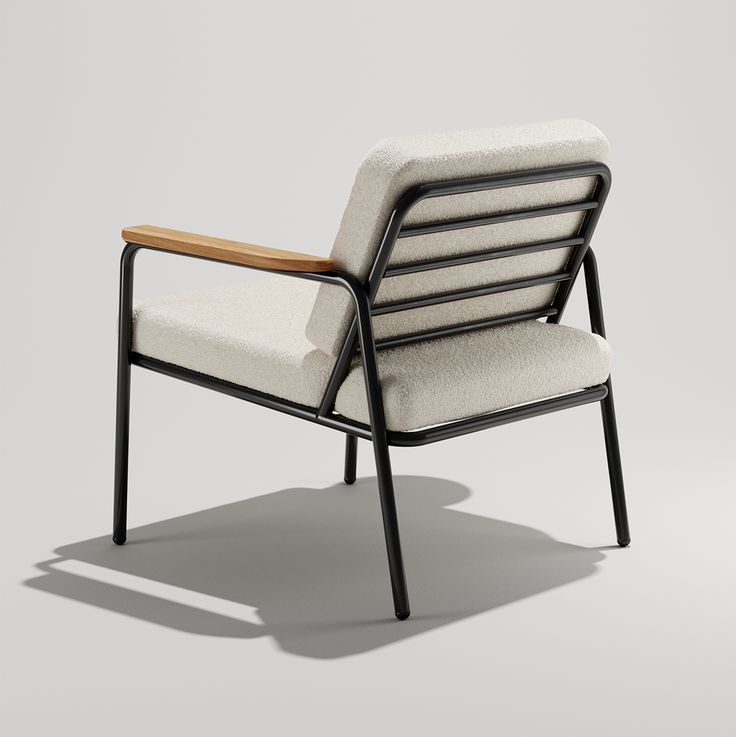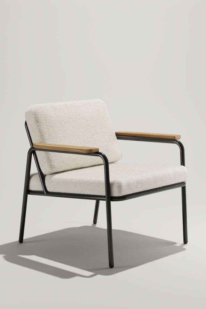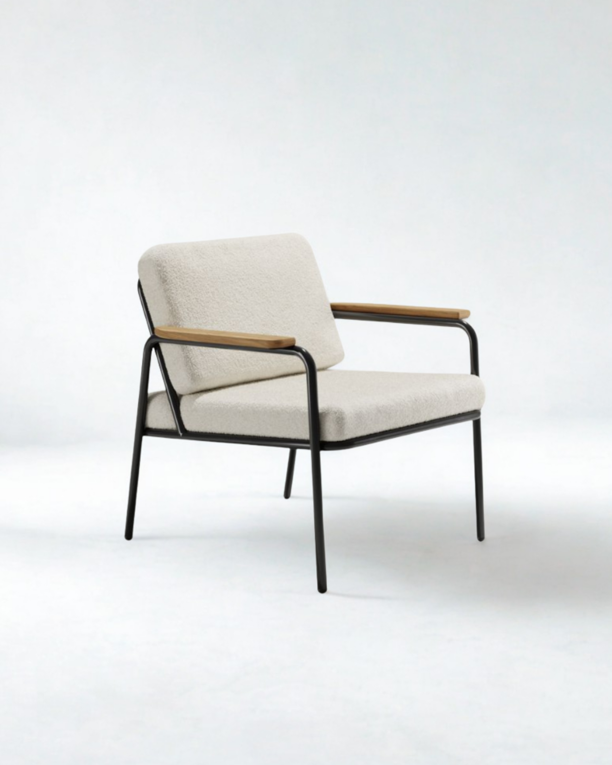 The "A-frame" Chair by Metallures is a celebration of clean, structural design. The chair's name is a nod to its unique powder-coated metal frame, which creates a striking visual statement. The plush, upholstered cushions and warm, Solid wooden Ache armrests provide a soft contrast, making this chair as comfortable as it is stylish.