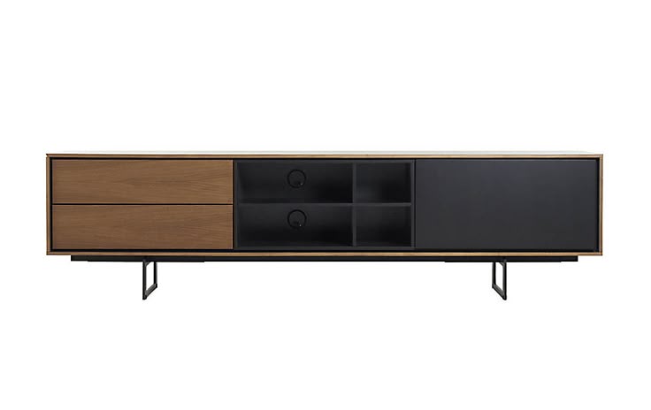 Elevate your living room with the clean, sophisticated design of The "Claro" Media Console from Metallures. This striking piece is a testament to the beauty of contrasting materials, combining natural warmth with a bold, modern aesthetic. Its name, meaning "clear" in Spanish, reflects its uncluttered design and the clarity it brings to your space.