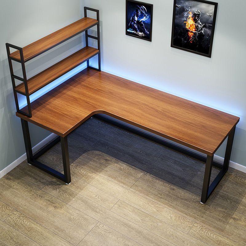 - Walnut-Finished Wood Surfaces: The spacious desktop and shelves are crafted from a durable walnut-finished wood, showcasing a rich, warm tone.