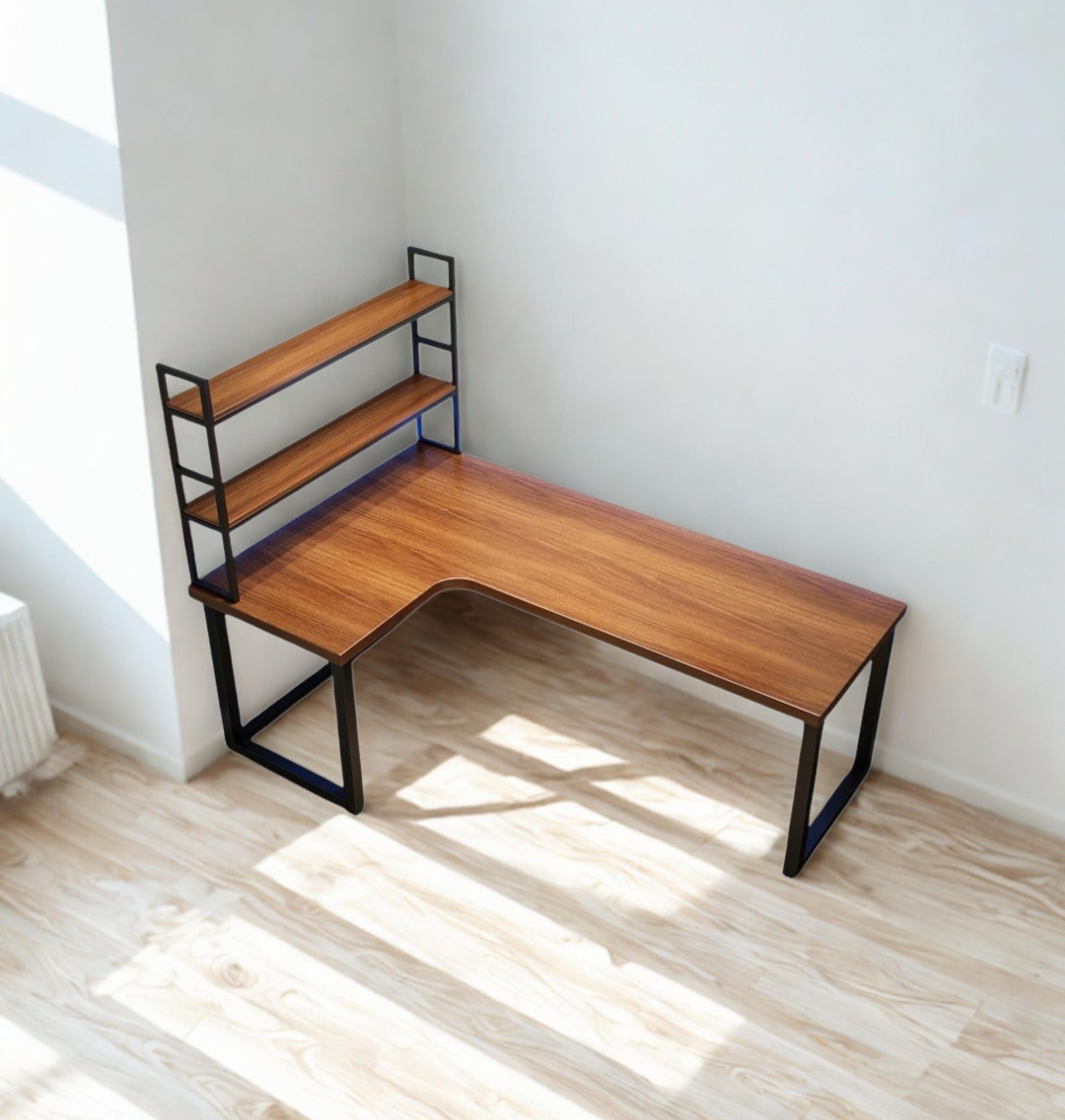 - L-Shaped & Space-Saving Design: Its ergonomic L-shape maximizes corner space, providing an expansive and efficient work area.