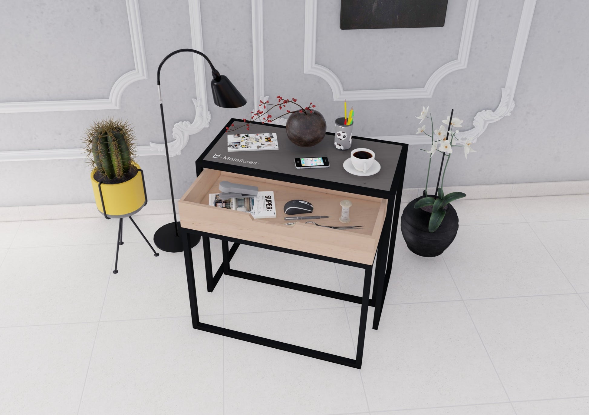 - 1 x Horizon Drift Side Table (dark tabletop, pure wood drawer, matte black powder-coated metal frame)