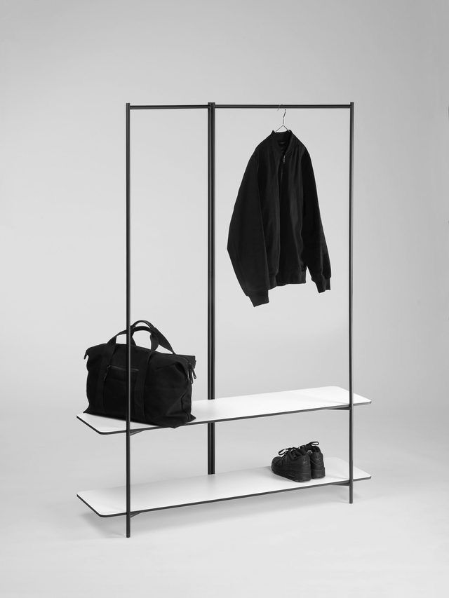 - 1 x Nexus Wardrobe Stand (Corian shelves, matte black powder-coated metal frame)