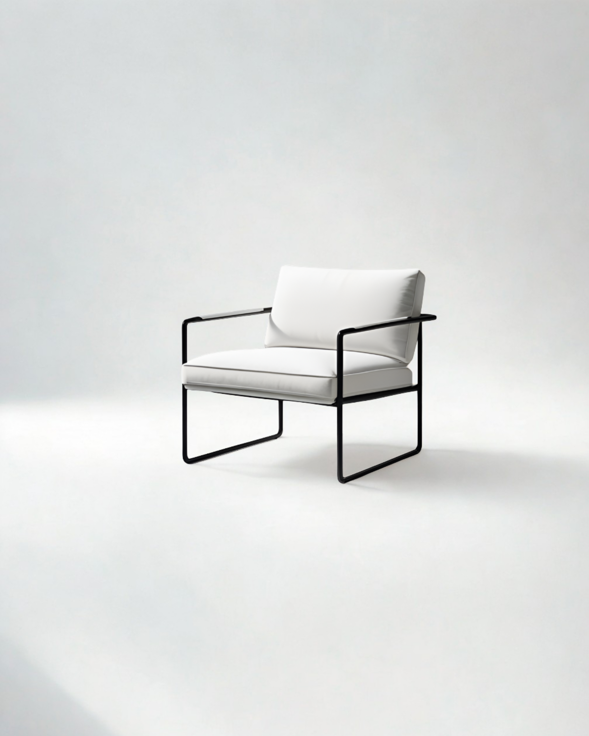 Introduce a breath of fresh air and modern elegance into your home with the Polaris Lounge Chair from Metallures. This stunning piece masterfully combines the strength of minimalist design with the soft allure of bright comfort, creating a focal point that is both striking and inviting.