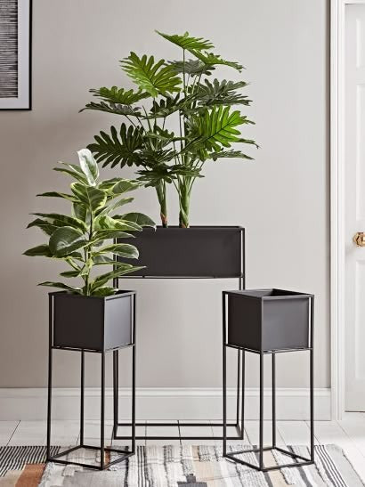 - 1 x Mid-Height Square Planter Stand (matte black powder-coated metal)
