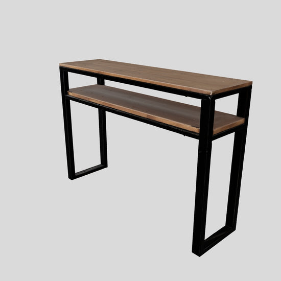 - 1 x Urban Strata Console Table (pure wood top & shelf, matte black powder-coated metal frame)