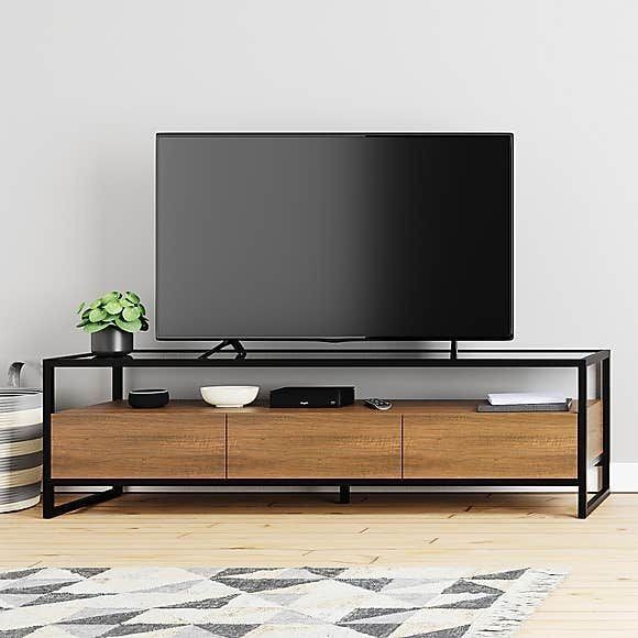 - Open Shelving: Offers ample space for media devices and display items with easy access for cables.
